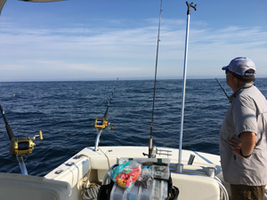 As for the weather, it eventually brought a premature end to our fishing day and made for a very long 2-1/2-hour trip back to Port Harbor in 4-6-foot seas. But the Gerry-O took them well. I continue to be impressed with the Albemarle hull design http://www.albemarleboats.com/ Its deep V cuts into the waves then its wide flare pushes them aside and softens the blow, where many other hull styles would pound. And we fished on a day when many bigger boats stayed at the dock.